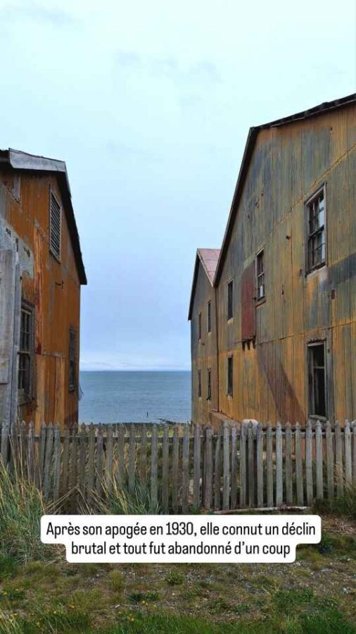 L’Estancia San Gregorio était au début du XXe siècle l’une des principales productrices de laine, de viande et de cuir de mouton de la Patagonie chilienne. Une réussite économique dans la région. Comme beaucoup d’établissements similaires à cette époque, elle vivait en quasi autarcie avec tous les services utiles aux travailleurs : maisons, écoles, cuisine, garage, chapelle, infirmerie, bibliothèque, etc. Sans oublier une belle cave à vin. Elle disposait même de quais pour l’expédition des marchandises par train ou par bateau. Après une période d’apogée vers 1930, elle connut un déclin brutal, peut-être en raison d’une mauvaise gestion, entraînant l’abandon des bâtiments qui sont restés aujourd’hui dans leur jus. On y trouve même des ballots de laine prêts à être exportés et, en cherchant bien mais l’accès est plus dangereux, des carcasses de moutons non encore tondus. Dommage, car l’industrie ovine semble encore assez active dans le sud du Chili, à en voir les grands troupeaux qui paissent un peu partout. Entre autres bâtiments à l’abandon, on trouve sur le rivage l’épave de l’Amadeo, le navire exportateur des propriétaires, qui a donc échoué avec eux…