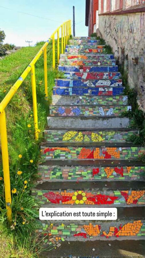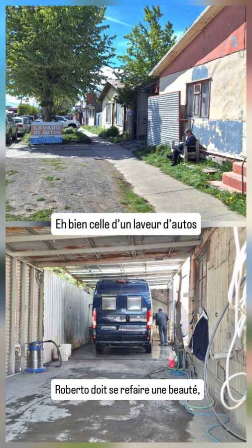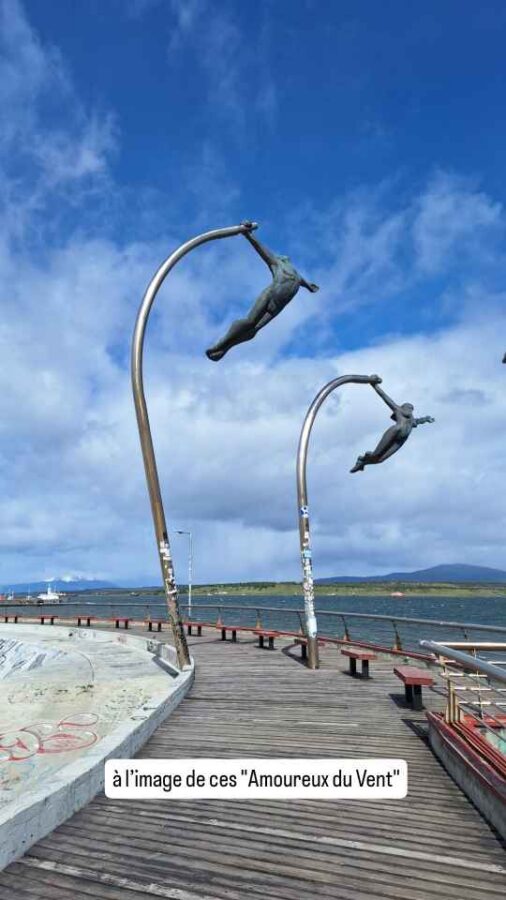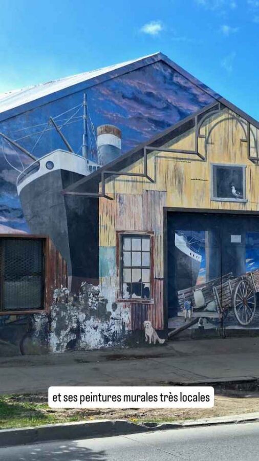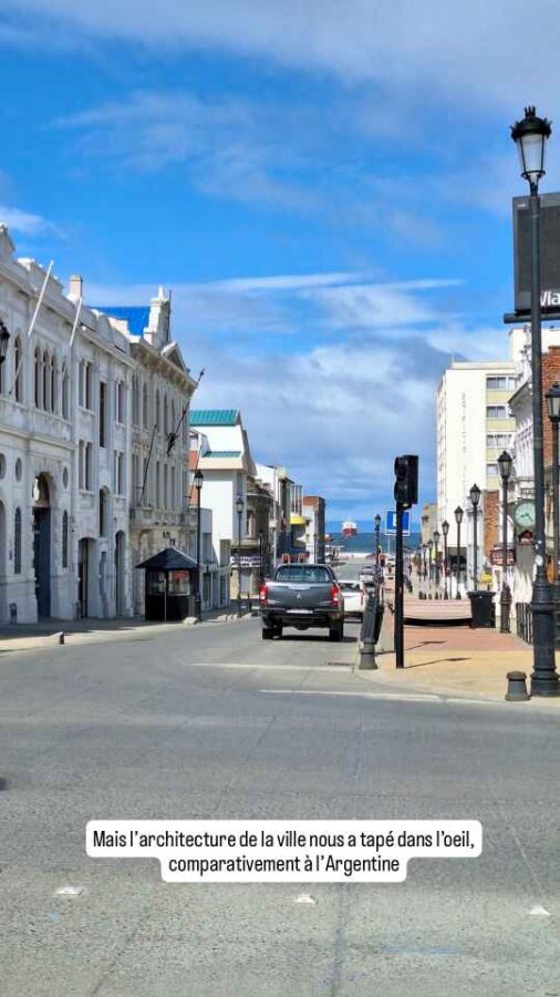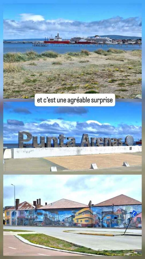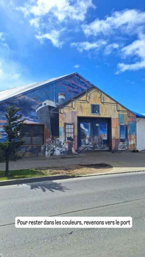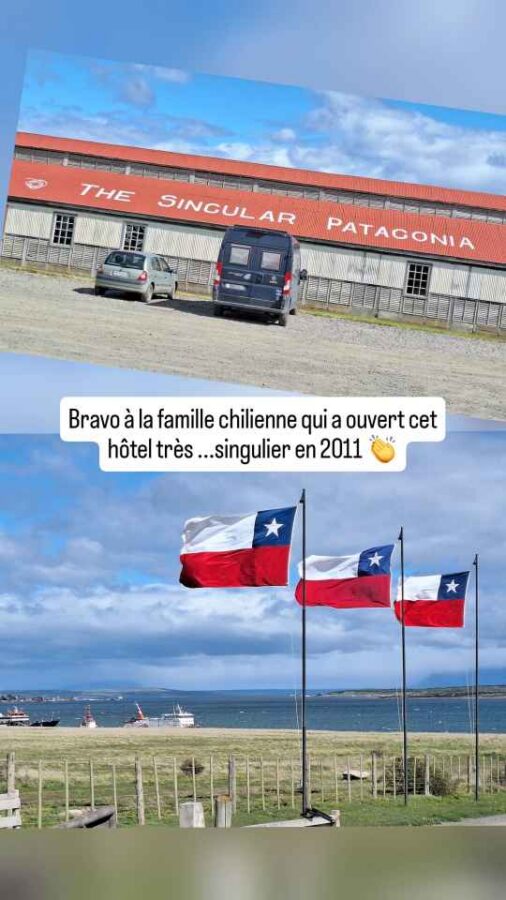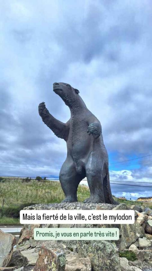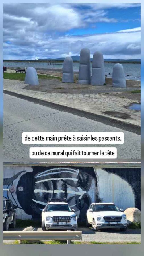 De taille plus modeste que Punta Arenas, cette ville portuaire n’en est pas moins charmante avec ses petites maisons colorées, ses sculptures sur le port (les Amoureux du Vent, puis une main géante semblant sortir du trottoir pour attraper les passants) et ses cygnes à bec noir près du rivage. Nous achetons ici des cartes SIM pour le Chili (4,50€ pour 40 Go et réseaux sociaux illimités, ça va !), nous faisons nettoyer Roberto qui en avait bien besoin et faisons 2 ou 3 courses. Côté excursions, nous avons prévu de rendre une petite visite à la grotte du paresseux géant et à une usine frigorifique reconvertie en hôtel 5 étoiles.