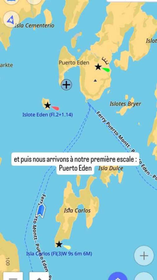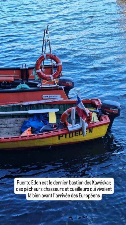 Deux escales sont prévues. La première, 26 heures après notre départ, est Puerto Eden, un petit port de pêcheurs presque tous descendants du peuple Kawésqar, présent dans la région depuis plusieurs millénaires, et qui n’est accessible que par la mer, ceci expliquant sans doute cela. Seuls les passagers dont c’est la destination finale auront d’ailleurs le droit d’y pénétrer. Ceux qui poursuivent comme nous ne pourront que descendre sur le quai et faire quelques photos, voire acheter un peu de nourriture. Il a été étonnant de voir d’ailleurs, alors que nous sommes généreusement nourris, de nombreux passagers se précipiter sur les stands d’empanadas. Et nous voilà vite repartis jusqu’à l’escale suivante. Mais nous avons le temps, elle est à 25 heures de navigation !