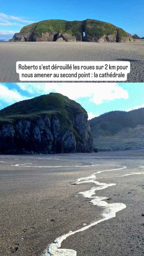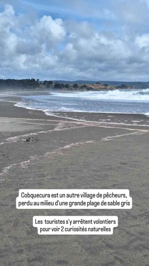 Nous sommes rendus à Colquecura, un autre village de pêcheurs un peu perdu dans son immense plage de sable gris. Hors saison, c’est quasi désert et nous allons pouvoir stationner tranquilles pour la nuit juste au bord de la plage. Contrairement au village précédent, 2 attractions touristiques sont susceptibles de ramener un peu de monde, de manière raisonnable car la route est à l’écart des grands axes. La première est un sanctuaire, non pas dans le sens religieux du terme mais dans son aspect de lieu naturel protégé. La seconde est une cathédrale, non pas dans le sens d’une église épiscopale mais en raison de l’apparence d’une structure naturelle. Levons le mystère.