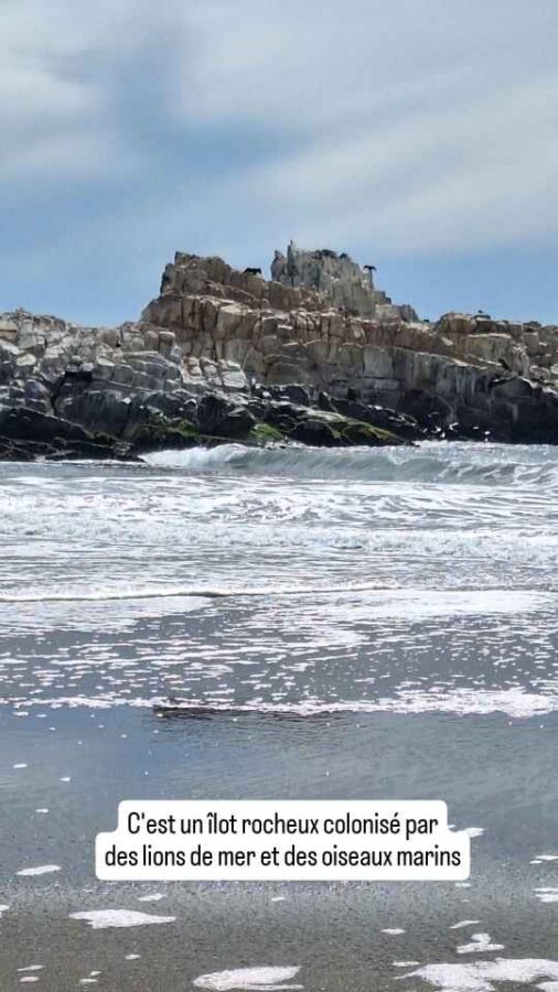 Notre première attraction est un ensemble d’îlots rocheux tout proches de la plage mais d’accès interdit car hébergeant une colonie de lions de mer et un grand nombre d’oiseau marins. Difficile de transmettre l’ambiance du lieu : ses occupants se voient mieux aux jumelles que sur les photos, leurs cris et grognements sont masqués par le bruit des vagues sur les vidéos, et l’odeur forte lorsque l’on est sous le vent n’est pas encore transmissible.