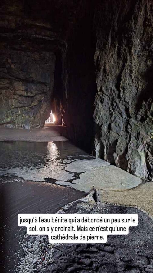 La seconde attraction est une cathédrale … de pierre, sculptée par la mer dans des falaises sans doute un peu tendres. De petits tunnels côte à côte peuvent rappeler les arcs-boutants d’une cathédrale, tandis qu’une grotte pourrait être sa nef. Une statue de la Vierge Marie est d’ailleurs placée à l’entrée, entourée d’un certain nombre d’ex-voto. Il ne serait pas invraisemblable que des messes soient célébrées là de temps en temps.