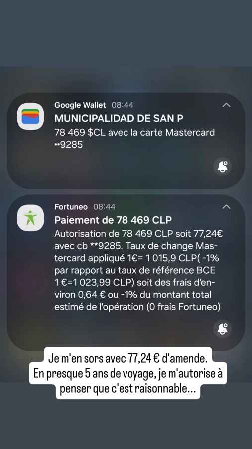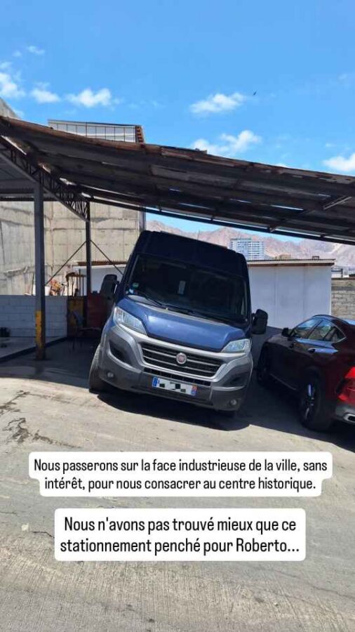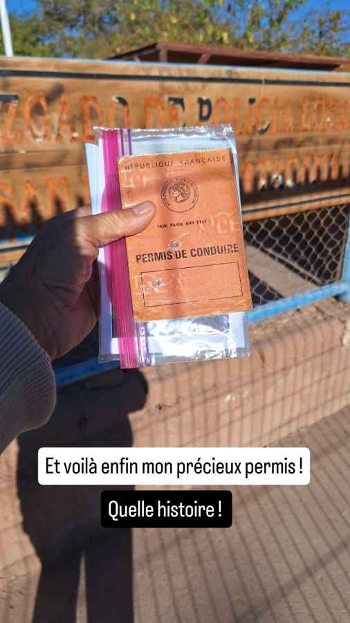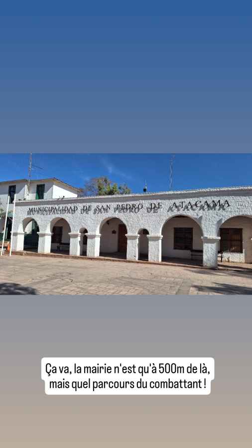 Retour sur la nuit d’hier soir : le ciel est resté couvert et la sortie a été annulée, pour nos amis comme pour nous. Ce sera pour une prochaine fois, en Bolivie peut-être. Dommage car les ciels étoilés exceptionnels de la région permettent normalement de belles observations, dans des ambiances souvent conviviales : pour compenser le froid nocturne on vous offre couramment Pisco Sour ou chocolat chaud… Allez, me revoilà au Tribunal de Police. Cette fois devrait être la bonne ! Je présente mes papiers. Il est possible de payer en carte aujourd’hui, mais pas ici… On me renvoie vers la mairie, à 500 m de là. Je m’y rends, je paye en carte, je retourne avec le reçu au Tribunal et l’on me rend enfin mon permis. Yesss ! Bilan de l’opération : 5 jours d’attente, 77 euros d’amende, mais un voyage libre dans le Nord du Chili grâce au nouveau permis de circuler de Roberto. Nous passons dire au revoir à nos amis français et reprenons la route du Nord.