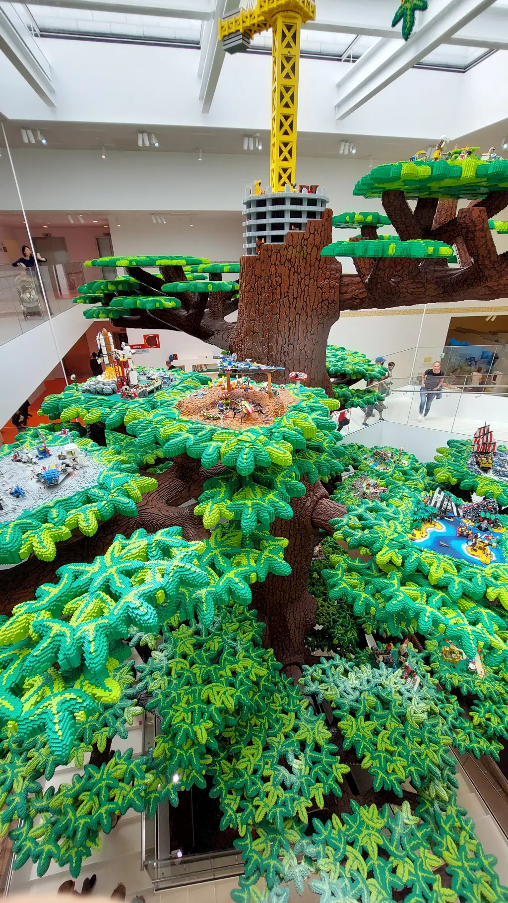 Nous nous sommes joints à la frénésie de la dernière semaine avant la rentrée scolaire danoise (eh oui les pauvres, les vacances d’été se terminent entre le 9 et le 11 août) pour visiter quelques attractions concernant les enfants, notamment un parc animalier dédié aux espèces scandinaves, mais aussi la Lego House à Billund, ville danoise dont l’économie est centrée depuis les années 50 sur la célèbre brique inventée par un menuisier natif. A ne pas confondre avec le parc Legoland de la même ville, qui est plutôt un parc d’attraction classique même si le design des manèges s’apparente aux Lego. La Lego House est plutôt orientée créativité. Des œuvres fabuleuses y sont exposées, comme cet arbre de 15,68 m de haut composé de plus de 6 millions de briques au centre de l’escalier principal.