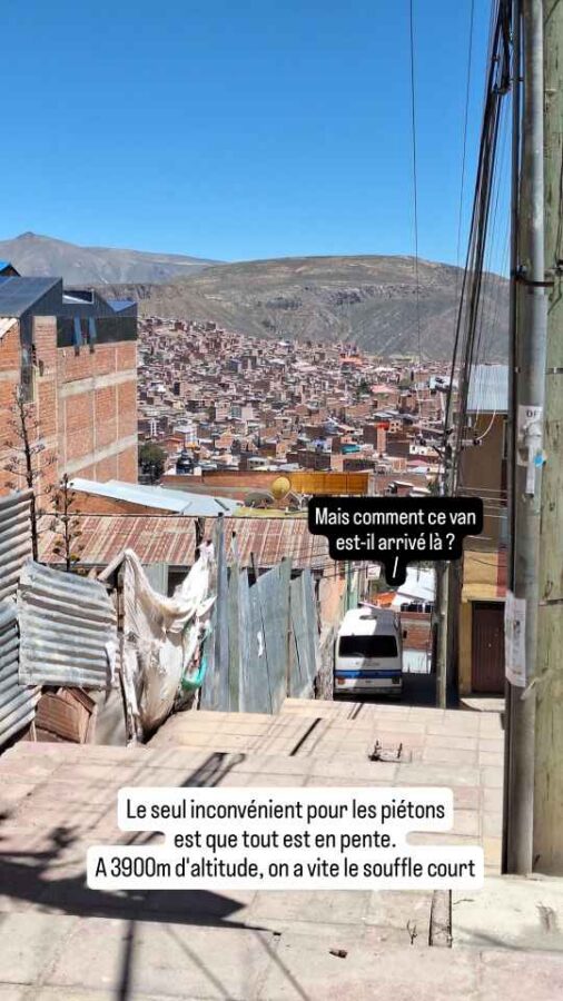 Nous arrivons à Oruro, la première grande ville depuis la frontière. Difficile d’ouvrir un guide ou un article qui ne parle pas majoritairement de son carnaval, un évènement majeur en Bolivie qui attire chaque année plus de 400 000 visiteurs. Et qui tombe la semaine prochaine. Ce qui pourrait paraître une bonne nouvelle n’en est pas une : la ville est en pleins préparatifs, avec installation en cours de nombreuses tribunes et échoppes qui prennent toutes les places de parking et rendent les rues du centre aussi bouchonnées que peu circulables, d’autant que beaucoup de monde est déjà arrivé. Après avoir tourné une bonne heure dans les embouteillages sans pouvoir nous stationner, nous avons renoncé à visiter Oruro. Les principales attractions de la ville sont inaccessibles et nous n’avons pas l’intention d’attendre 1 semaine pour voir ce carnaval. Si le côté pittoresque et culturel est indéniable, nous goûtons peu aux bains de foule et craignons les débordements et autres batailles d’eau qui accompagnent les festivités. Nous nous échappons du centre pour remplir le frigo et le réservoir de Roberto. Pas de supermarché ici, rien que des petites supérettes où manquent beaucoup des produits que nous consommons habituellement comme les yaourts et les fruits par exemple. Quant au carburant, nous n’en trouverons qu’à la 4ème station-service testée, les précédentes, outre une file d’attente impressionnante, n’avaient pas ou plus de diesel. Mais la dernière a été la bonne, ouf !