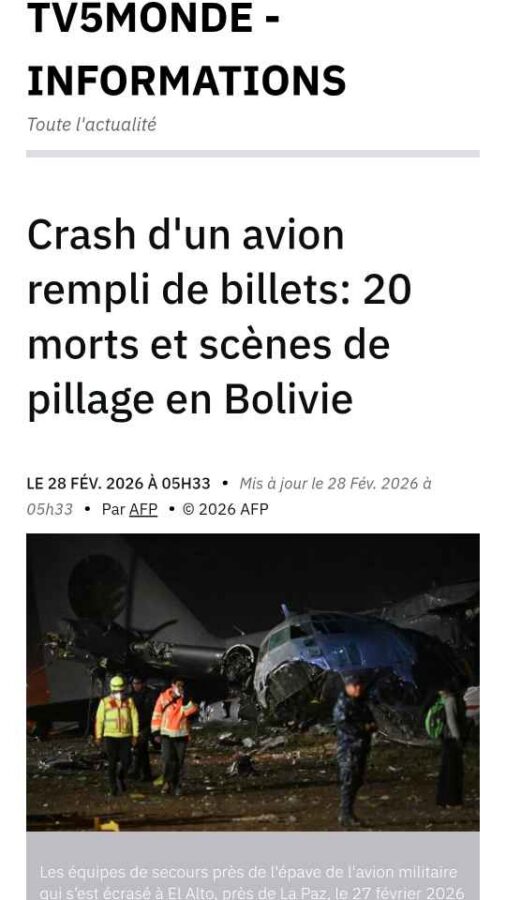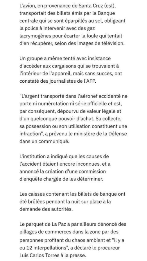En 2026, la production des pièces de monnaie boliviennes est toujours localisée à Potosi, mais dans un autre endroit. Les billets de banque quant à eux sont imprimés à Santa Cruz, une autre grande ville du pays. Et l’on vient d’en entendre parler avec cet avion militaire qui, lors de sa livraison à la banque centrale de La Paz, s’est crashé à l’atterrissage, éparpillant son chargement de billets. Inutile de dire que la police a eu un peu de mal à disperser les curieux !