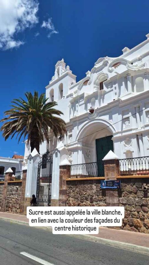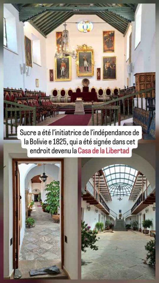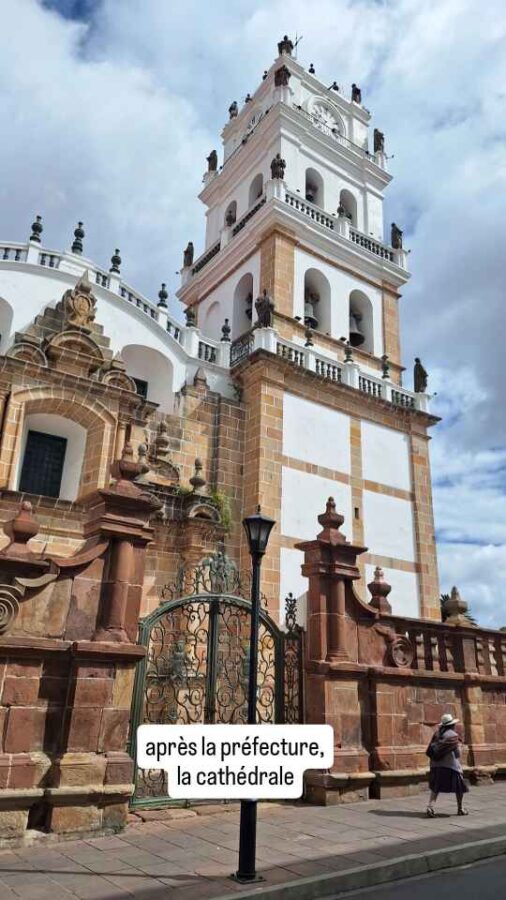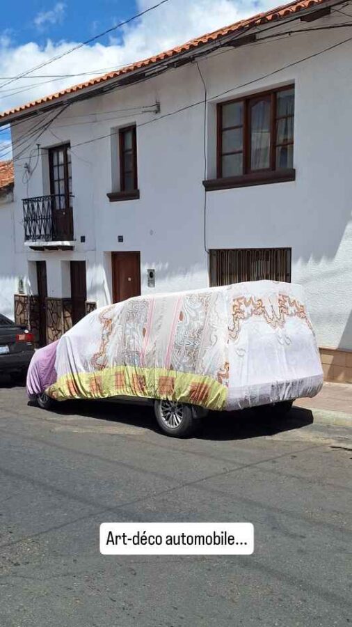 Voilà une ville considérée par beaucoup comme la plus belle de Bolivie, et la pompiste avec qui j’ai causé un peu pendant mon plein de diesel n’a pas démenti. Mais elle était peut-être d’ici… Sucre (prononcer soucré) a été la première capitale du pays, ayant été la première ville à obtenir son indépendance de l’empire espagnol. Devenue riche grâce à sa voisine Potosi, grand centre intellectuel et culturel, elle était le lieu idéal pour que les révolutionnaires développent leur idéaux d’émancipation. Ce qui fut obtenu le 25 mai 1809, grâce notamment aux actions guerrières du maréchal …Sucre. La capitale fut transférée à La Paz 90 ans plus tard, mais Sucre a gardé un statut de capitale constitutionnelle et juridique. La ville a gardé de cette période faste tout le charme de l’architecture coloniale espagnole mélangée à des styles empruntés aux européens et aux nord-américains. Nous avons consacré plusieurs jours à la visite, profitant par ailleurs d’un climat idéal, chaud et ensoleillé le jour, frais la nuit grâce aux 2700m d’altitude. Ci-dessous quelques photos commentées d’une partie de nos découvertes.